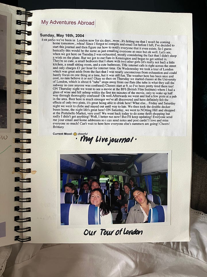 I guess circling back is one my “things.” If you read my post from last week, you’ll know I was in England twenty-two years ago experiencing a comically parallel bout of homesickness and desire to sit in front of a computer and update my Live Journal.